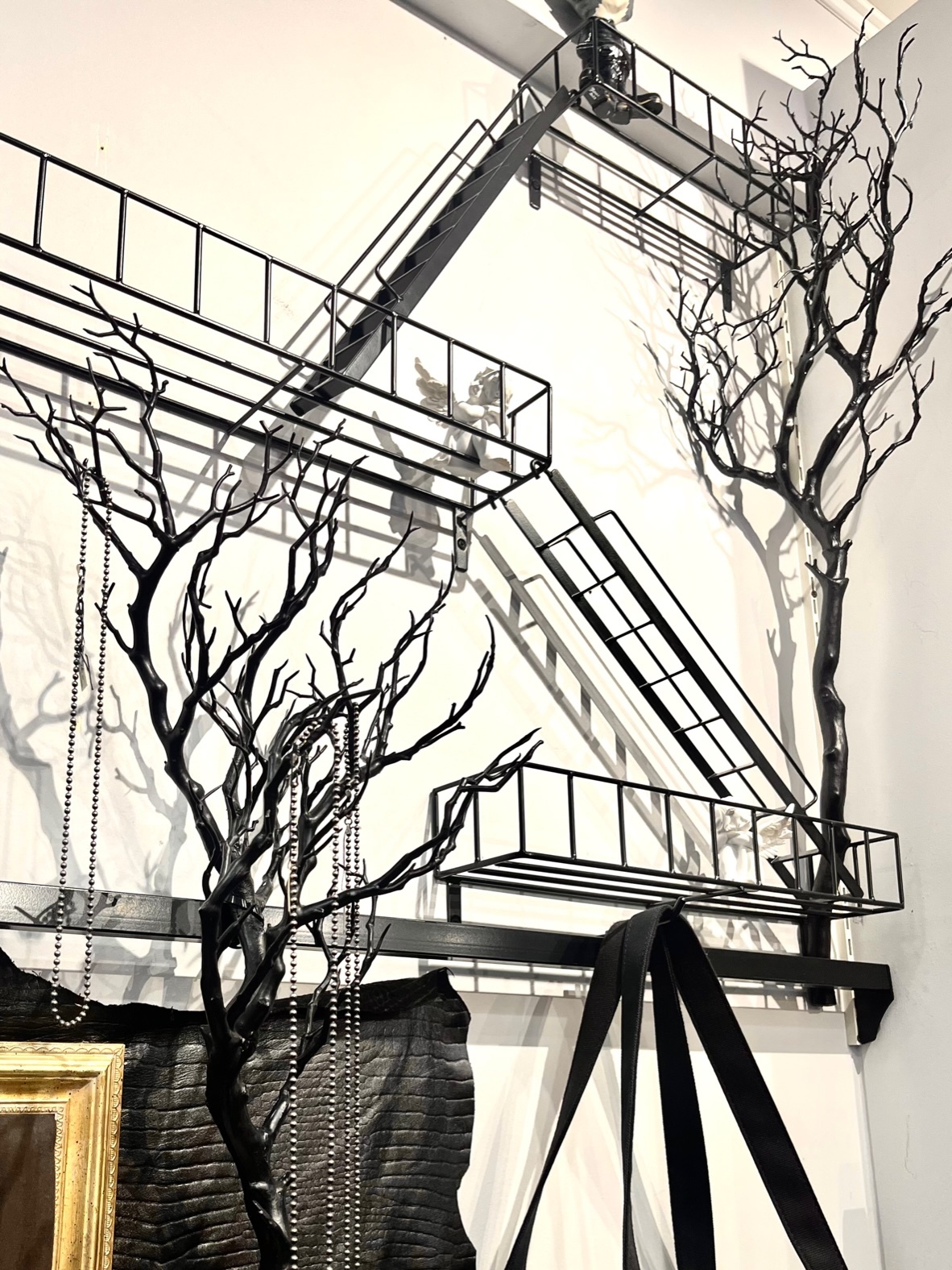 【and fine line】の、STRUMのレザーを用いたart作品の展示,販売の様子です。